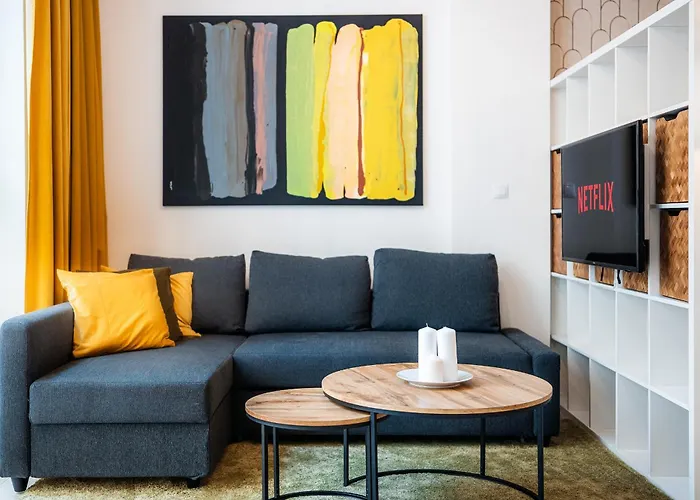 O Centrum Apartments Pstrossova dispõe de área de estar, local de descanso e cozinha totalmente equipada e oferece vistas para a cidade. O alojamento oferece aos hóspedes a conveniência de secador de cabelo, lençóis de banho e toalhas na casa de banho. Além disso, há casa de banho separada e chuveiro.